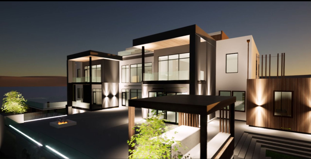 32,000+ Square feet. This house is 4 floor structure with roof top, multiple balconies, two level patio. elevator. Garage with dual purpose in basement. Garage has a turntable that saves the space for garage parking and removes the need of multiple garage doors keeping house facade beautiful. Total 9 garages. Two story Great room, gym, home theater, multiple kitchens and grand owner’s suite on first floor.